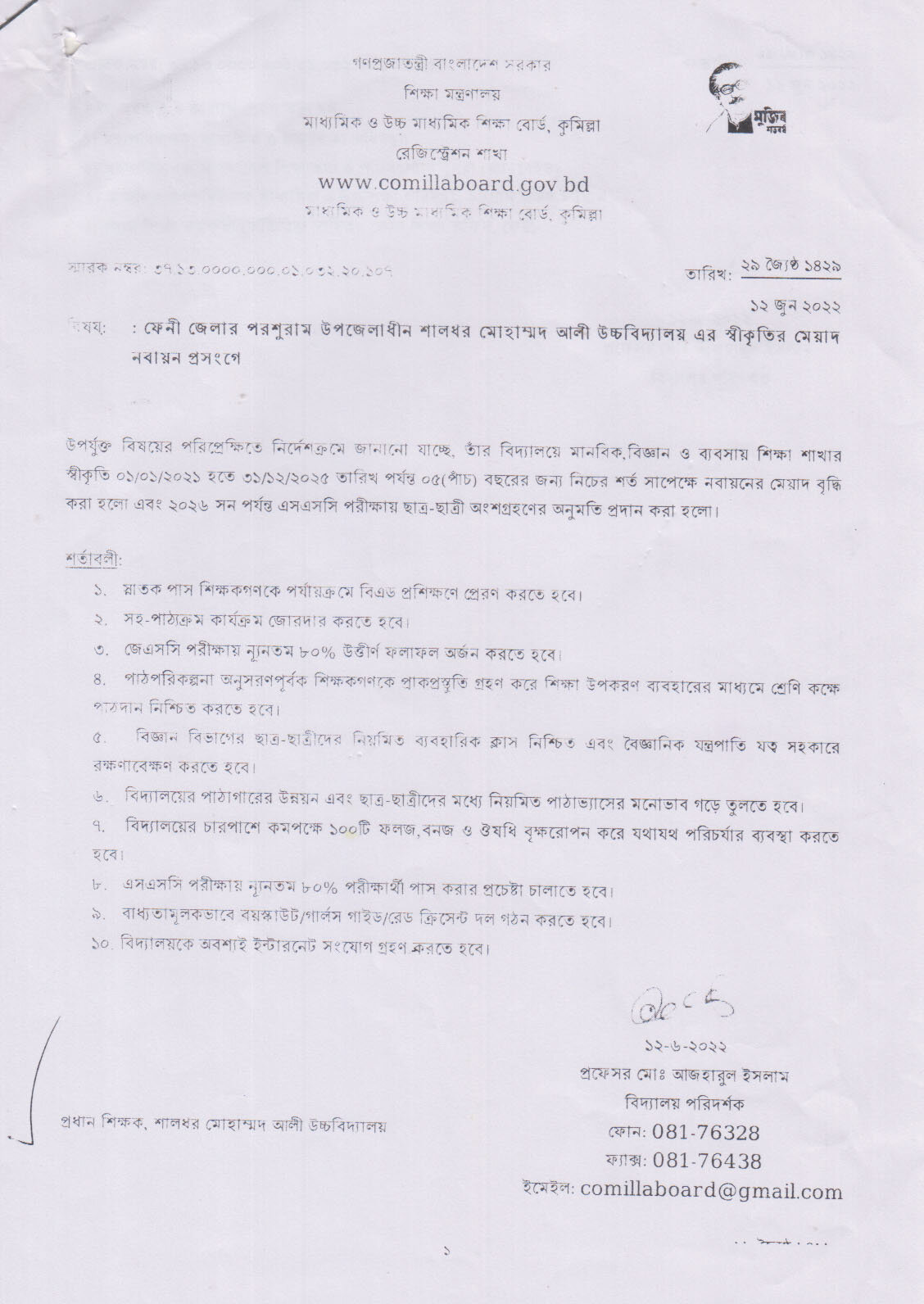 পাঠদানের অনুমুতি ও স্বীকৃতি